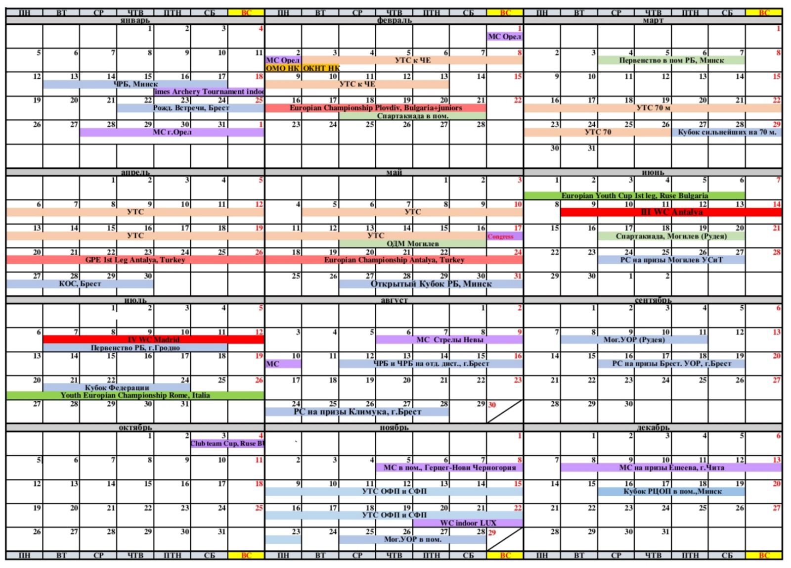 --- Календарь спортивных мероприятий по стрельбе из лука на 2026 год;